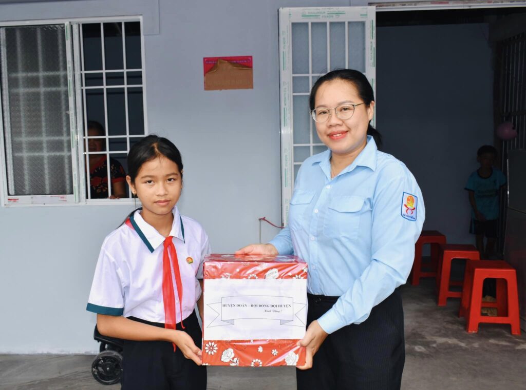 Nhân dịp này, Huyện đoàn – Hội đồng Đội huyện trao tặng cho gia đình 01 phần quà, nhằm giúp em và gia đình có động lực, cổ vũ tinh thần đồng thời tạo điều kiện học tập thật tốt cũng như góp phần cho gia đình có cuộc sống tốt hơn trước.