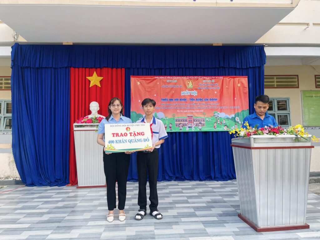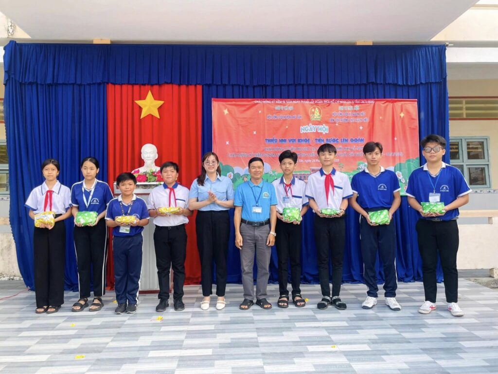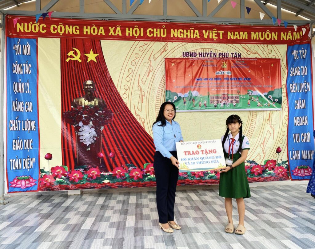 Hội đồng Đội huyện trao tặng sữa và khăn quàng đỏ cho 02 Liên đội trường Tiểu học Rạch Chèo và Trung học cơ sở Rạch Chèo