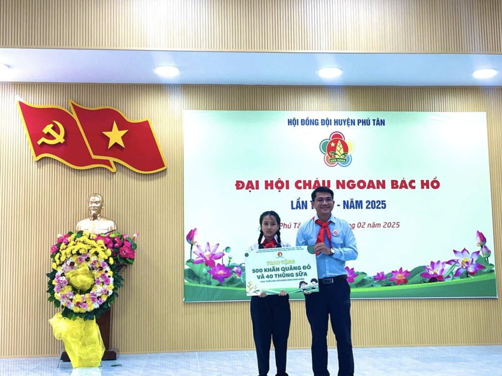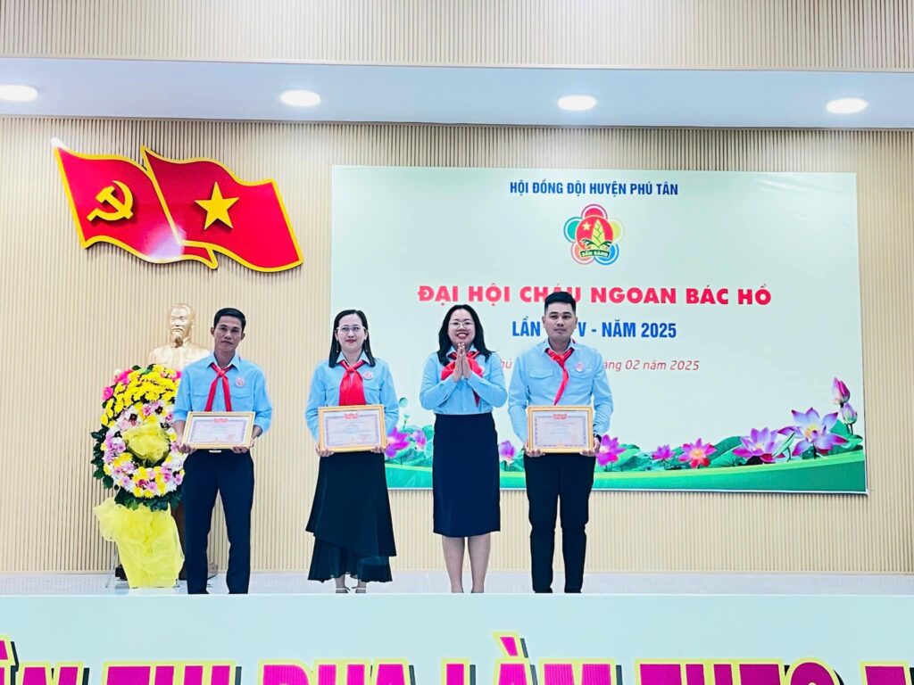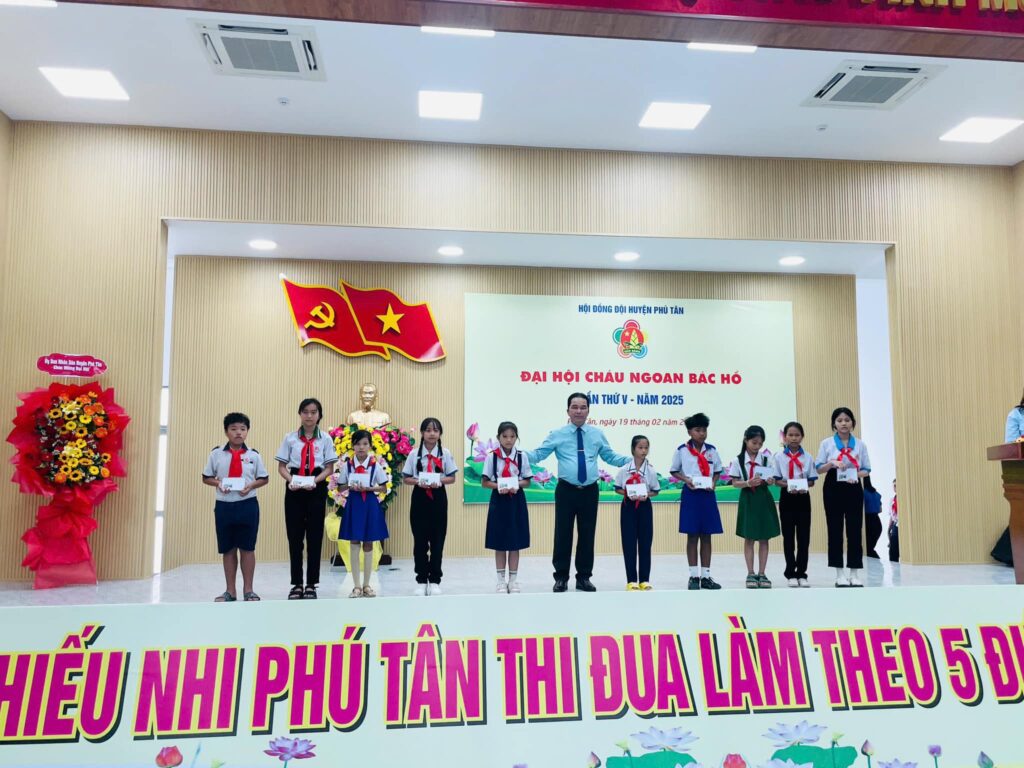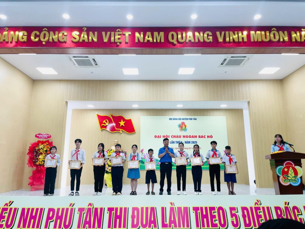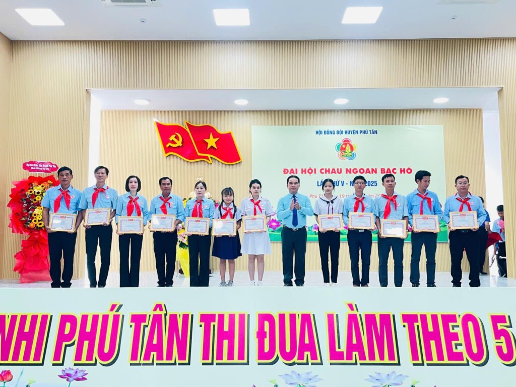 Dịp này, Hội đồng Đội tỉnh trao tặng 500 khăn quàng và 40 thùng sữa cho thiếu nhi huyện Phú Tân. Ủy ban nhân dân huyện tặng giấy khen cho 03 tập thể Liên đội, 09 cá nhân Tổng phụ trách Đội có những thành tích nổi bật công tác Đội và phong trào thiếu nhi giai đoạn 2020 – 2025, bên cạnh đó, Ủy ban nhân dân huyện còn trao tặng 10 suất học bổng, mỗi xuất trị giá 500.000 đồng cho các em thiếu nhi giàu nghị lực, vượt lên khó khăn để học tốt. Huyện đoàn – Hội đồng Đội huyện trao tặng Chứng nhận Cháu ngoan Bác Hồ cho 95 em Cháu ngoan Bác Hồ, trao giấy khen cho 03 tập thể Hội đồng Đội và 10 đội viên có thành tích suất sắc trong công tác Đội và phong trào thiếu nhi giai đoạn 2020 – 2025. Cũng tại Đại hội lần này, Hội đồng Đội huyện ra mắt đoàn đại biểu dự Đại hội Cháu ngoan Bác Hồ tỉnh Cà Mau lần thứ XV năm 2025, với 21 đại biểu.