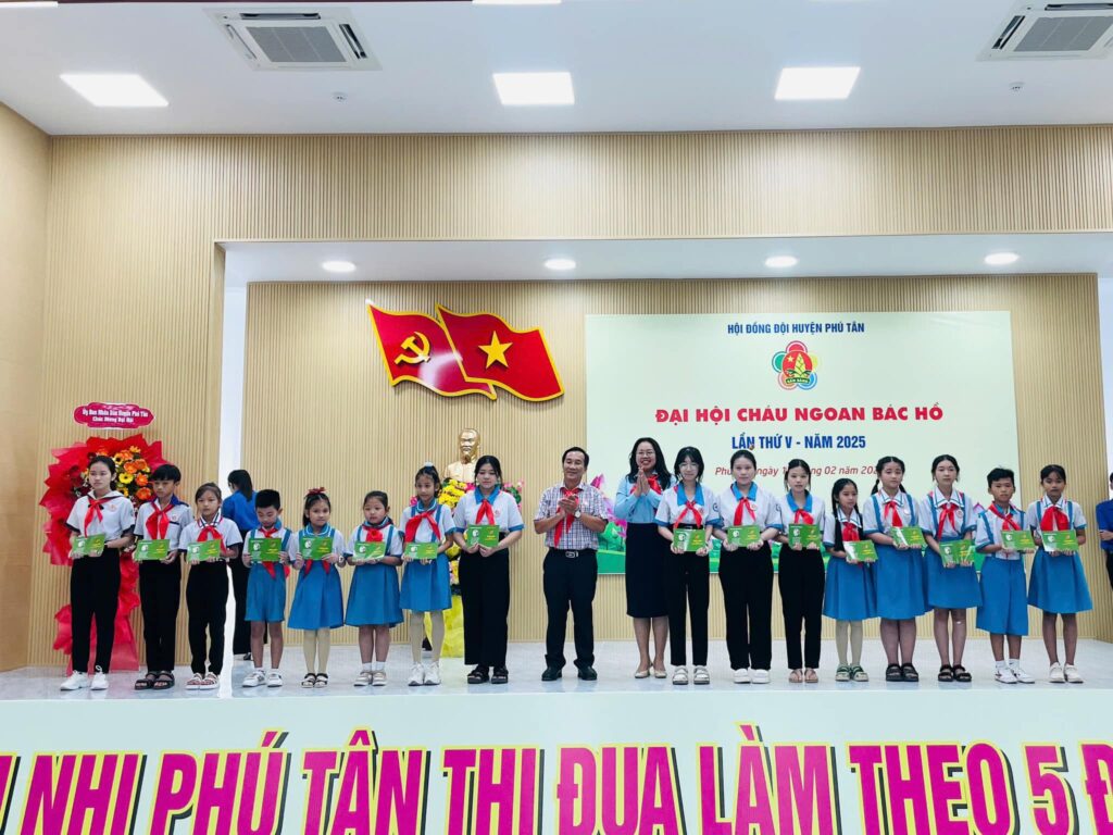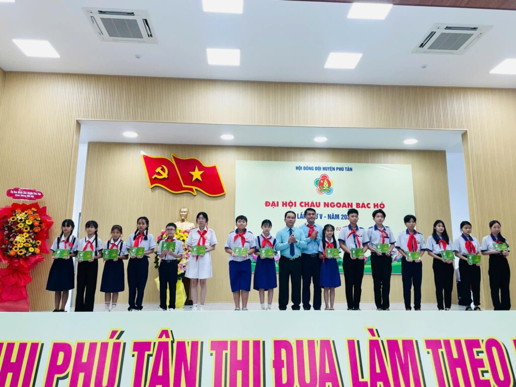 Dịp này, Hội đồng Đội tỉnh trao tặng 500 khăn quàng và 40 thùng sữa cho thiếu nhi huyện Phú Tân. Ủy ban nhân dân huyện tặng giấy khen cho 03 tập thể Liên đội, 09 cá nhân Tổng phụ trách Đội có những thành tích nổi bật công tác Đội và phong trào thiếu nhi giai đoạn 2020 – 2025, bên cạnh đó, Ủy ban nhân dân huyện còn trao tặng 10 suất học bổng, mỗi xuất trị giá 500.000 đồng cho các em thiếu nhi giàu nghị lực, vượt lên khó khăn để học tốt. Huyện đoàn – Hội đồng Đội huyện trao tặng Chứng nhận Cháu ngoan Bác Hồ cho 95 em Cháu ngoan Bác Hồ, trao giấy khen cho 03 tập thể Hội đồng Đội và 10 đội viên có thành tích suất sắc trong công tác Đội và phong trào thiếu nhi giai đoạn 2020 – 2025. Cũng tại Đại hội lần này, Hội đồng Đội huyện ra mắt đoàn đại biểu dự Đại hội Cháu ngoan Bác Hồ tỉnh Cà Mau lần thứ XV năm 2025, với 21 đại biểu.