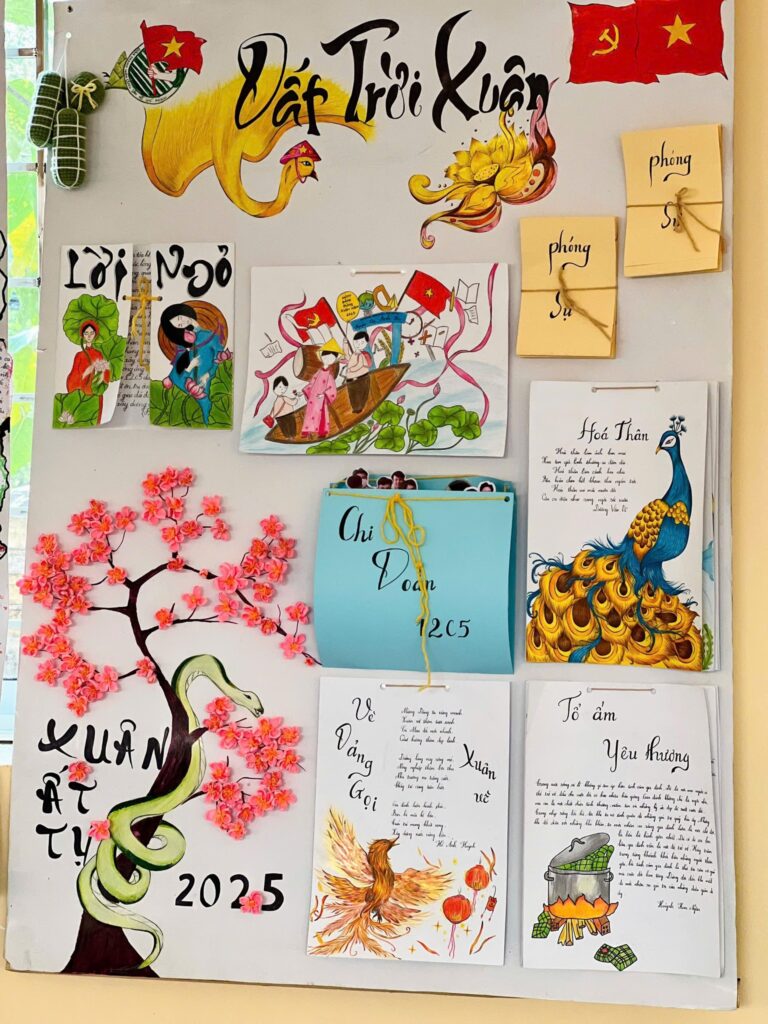 Phong trào làm báo tường mừng xuân được phát động từ cuối tháng 11, được các khối lớp hăng hái tham gia, với tổng số 19 tác phẩm của 19 tập thể lớp.